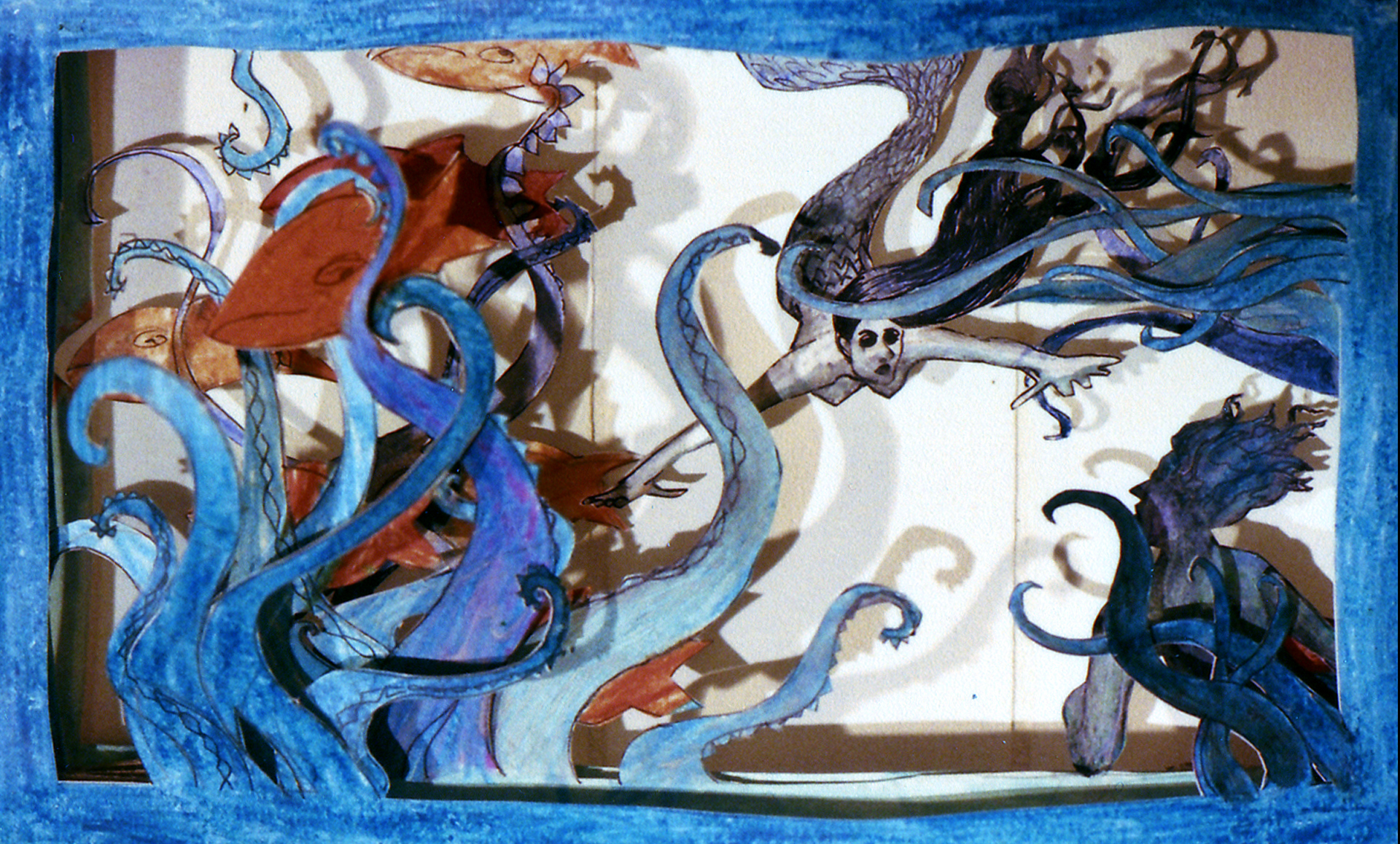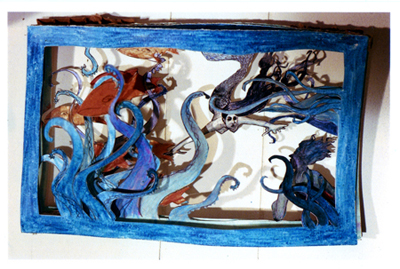 Layered Bristol Board with Crayon & Ink, 12" x 9 " x 2"