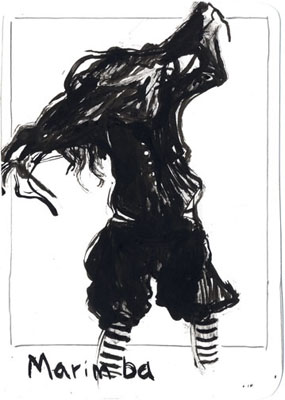 This series of images is based on a video of myself battling an umbrella. I pulled stills from it and created ink drawings based on them.